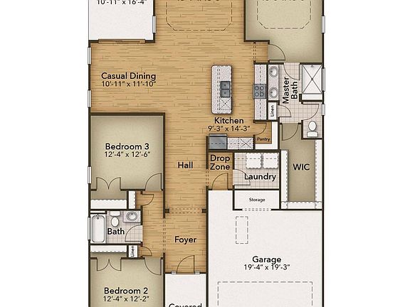 The Shorebreak is the perfect balance between outdoor living space and a coastal-inspired interior, encouraging you to slip off your sandals and relax. Starting at 1,938 heated square feet, this home offers three bedrooms, two bathrooms, and a two-car garage. Step in from the Shorebreak’s covered front porch to find an open kitchen, dining, and great room area. Breeze through sliding glass doors onto a 179 square foot covered porch, ideal for warm summer evenings or afternoon get-togethers. Whether you’re looking for an abundance of counter space, added seating, or a more intimate gathering area, this model’s options will serve as the solution. Through the foyer, you’ll find a large drop zone and laundry area while you unload beach accessories or sand-filled clothes. Drop-off beach chairs in the convenient storage space just inside the garage, as well. Across from the drop zone, is the second and third bedrooms, along with a large full bathroom. Beyond the open living space, find a stunning master suite complete with a tray ceiling, enormous walk-in closet, double vanity, and options for a seated shower.