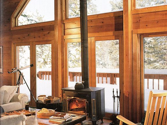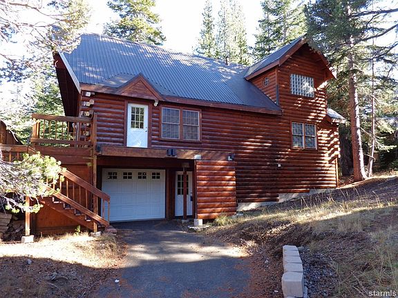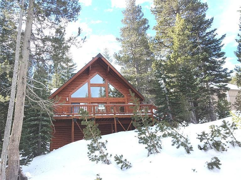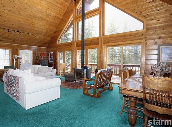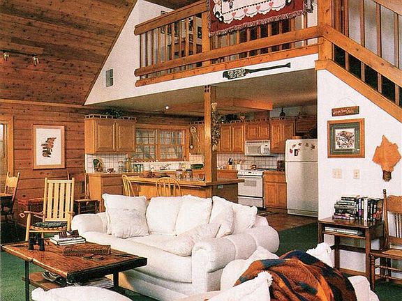 This spectacular Lincoln log mountain chalet has been featured in the Log Home Living magazine. The spacious great room includes vaulted ceilings and is filled with light from windows on three sides and a wall of windows facing the mountain vistas. It opens onto a large deck which is ideal for summer dining and outdoor access while a cozy and efficient wood stove adds warmth and ambiance when temperatures start to drop. The large kitchen invites multiple chefs with extensive counter space plus a center island with lots of fun bar seating! An expansive master suite provides a private retreat with its own deck and a master bath complete with a separate shower and 2 person jacuzzi tub. The master shares the top floor with a convenient loft while 2 more bedrooms and a bath are on the main level. An oversized garage with extra storage and a newly paved driveway complete the perfect mountain home