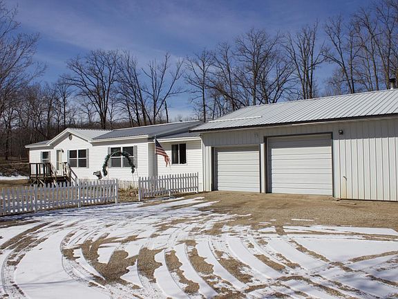Here is a very well kept rural property with tons of amenities. This is a 1996 Friendship double wide manufactured home with attached breezeway, 2 stall garage and well equipped wood shop. Shop has it's own furnace and corn burning stove along with a highly engineered dust collection system. Garage has an oil change pit (doubles as a storm shelter) and brand new garage door opener. New in 2011 - steel roof, furnace and central A/C plus new gas range and washer/dryer. All on 10 acres with wildlife galore!