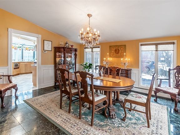 Situated on a private, park-like lot, This is a unique & wonderful home for Family, & Entertaining friends. The formal Living room w vaulted beamed ceiling & skylight showcases 3 Reclaimed, Stained Glass window panels. The lg dining room w newer windows & custom shades is adjacent to your bright Chef's kitchen with a commercial, 8 burner Vulcan gas stove, a Solarium w granite breakfast bar & Countertops, one of a Kind porcelain tilework & stainless backsplash, pot racks and generous hickory cabinetry for storage, along with dual dishwashers, stainless refrigerator and movable kitchen island. A 23x12 family room w wall of windows & gas fireplace completes the 1st floor. The Primary bedroom has a vaulted ceiling, gas fireplace, multiple closets,  9x6 dressing area, and private bath. The lower level has the updated 3rd bath, a 16x8 laundryroom/pantry w 2nd refrigerator & upright freezer, & a den with gas fireplace, custom wine racks , & wetbar. For outside entertaining, the 18x12 Patio Enclosure shows off the in-ground pool & perennial beds w stone paths & secret gardens. Imagine Alfresco dining on the poolside deck under the Kohler awning, w roll down sides. Contract due 3/10 @ 12pm