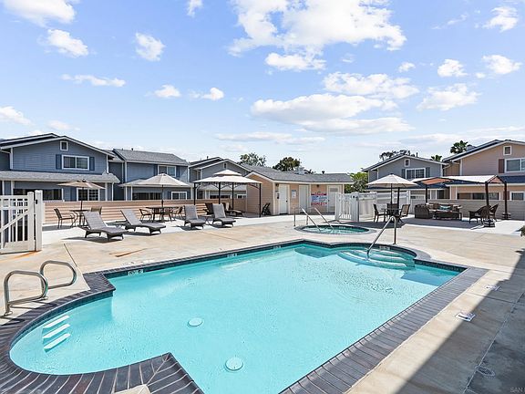 Your future awaits at this stunning corner unit! This double primary, 3-bed, 3 FULL bath townhouse is tucked away from busy roads yet within walking distance of La Mesa Village. Meticulously cared for, this home features custom finishes not found in other units in the community. The kitchen boasts a custom-built pantry, soft-close cabinetry, updated energy-efficient appliances, and granite countertops that match the elegant fireplace features. Additional storage is offered in the garage, and modern conveniences include an Ecobee smart thermostat, updated water heater, pre wired surround sound and remote-operated ceiling fans in every room. Custom shelving in the walk-in closets, hardwood flooring and wood tile decking add a luxurious touch. Your safety is ensured with new combo smoke and CO2 detectors and whole-house sprinkler system, while the low HOA dues add incredible value. This La Mesa gem is move-in ready and eagerly awaits to welcome you home!
