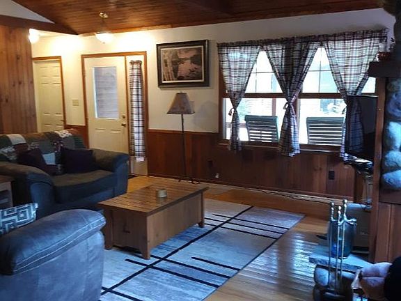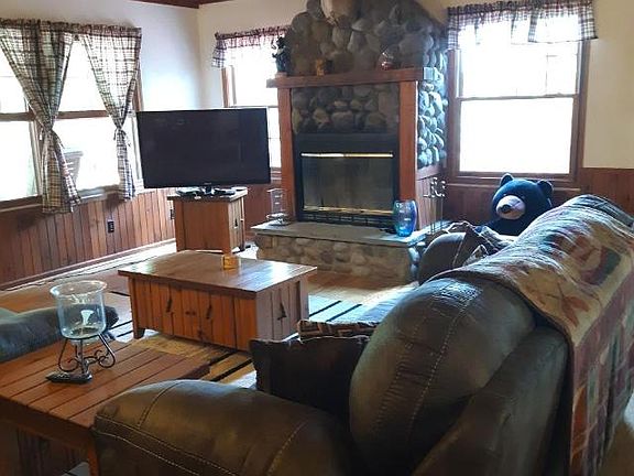Welcome to "Chateau Pines"! This large 4-bedroom home comes fully furnished, ready to move right in. It offers spectacular views of Mercer Lake. The interior of the home has hardwood floors, knotty pines accents, and wood beams. On the main level you will find open concept living, with a beautiful stone wood burning fireplace in the center of it all. Master bedroom with on suite, plus two additional bedrooms and a full bath, complete the main level. The upstairs houses a 4th bedroom with a half bath, perfect for guests! Take a trip to the lower walkout basement where there is another family room with a one of a kind custom bar. There is also a free-standing wood stove for added ambiance. Another half bath/laundry room and utility room with a tanning bed completes the lower level. This home has a lakeside deck with a screened in porch, and for an added bonus comes with a sauna, and Jacuzzi tub! A large mud room leads to an attached garage, plus another 2-car garage for all your toys.