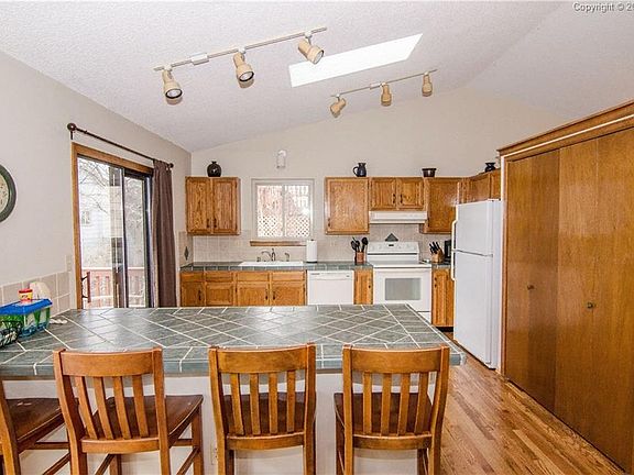 WOW! Gorgeous Peak view from the HUGE deck on this beauty. The wood floors are just plain stunning, and large kitchen / dining setup on this one make it a 10! Big 2nd family room in the lower walkout level, with an office or 4th bedroom. Beautifully updated and well cared for just a stones throw from Old Farm Park, High Chaparral Open Space, and minutes from Powers shopping. Great access to Peterson and COS airport, with some of D11's finest schools serving the area, this is quality living!