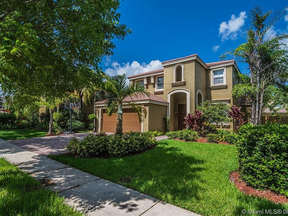 A BEAUTIFUL 4BR/2.5BA HOME IN PRESTIGIOUS GUARD GATED RIVIERA ISLES WITH A GREAT OPEN PLAN LAYOUT. THIS CORDOVA GRAND MODEL FEATURES A HUGE KITCHEN WITH LARGE CENTER ISLAND, ALL NEARLY NEW SS APPLIANCES, SOLID WOOD CABINETS AND CORIAN COUNTERS. TILE FLOORING DOWNSTAIRS AND WOOD FLOORING UPSTAIRS. LUXURIOUS MASTER SUITE WITH TRAY CEILINGS, HIS & HERS WALK-IN CLOSETS, PLUS 3 OTHER GOOD-SIZED BEDROOMS. AC IS UNDER 2 YEARS OLD, NEW WASHER AND DRYER. A 5 STAR RESORT STYLE CLUBHOUSE, POOL, GYM, TENNIS AND BASKETBALL COURTS. GREAT PRIVATE BACKYARD WITH A FIXED CANOPY COVERED PATIO AREA AND ADDITIONAL LAWN AREA PERFECT FOR KIDS AND ENTERTAINING. CENTRALLY LOCATED CLOSE TO A RATED SCHOOLS, MAJOR HIGHWAYS, SHOPS AND RESTAURANTS. THE PERFECT FAMILY HOME IN ONE OF WEST MIRAMAR'S BEST COMMUNITIES !!