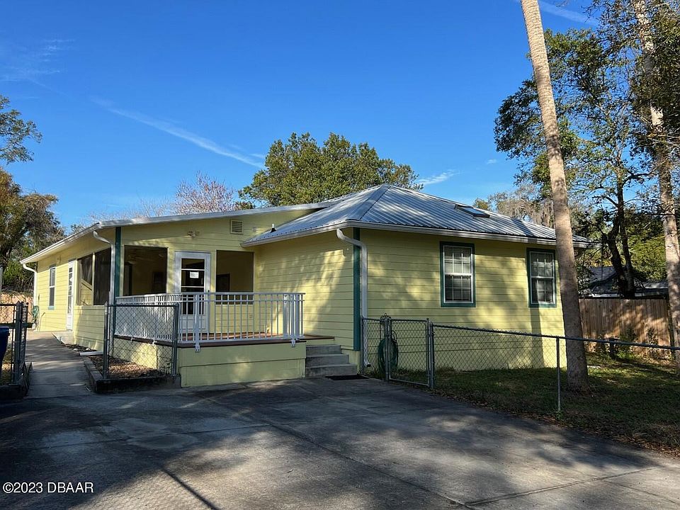 REMODELED HOME! DETACHED 3 BAY GARAGE/WORKSHOP. COVERED CARPORT. EXTENDED PAD AND RV HOOKUP. This 3 bed 2 bath home offers newer double pane windows, new carpet, new paint, new 6 panel interior doors. Knock down, vaulted ceilings in the Common Areas and the Primary Bedroom make the space live large. METAL ROOF and siding new in 2013. VELLUX SKY LIGHTS bring in natural light and YES, they do open! Open Front deck and newly screened, covered porch is wheelchair accessible. Double Leaded Glass Mahogany doors from porch opens to the Living and Dining Rm spaces. Leaded Glass accent window in the living space. Open Floor Plan! Spacious Kitchen offers a beautiful bay window box over the sink. Kitchen is tiled, has breakfast bar with accent lighting, smooth-top range. Split Bedroom Plan. Primary Bedroom is comfortable and calming, offers walk in closet, en-suite bath with step in shower. Pocket Doors. Guest Bedrooms are at the rear of house with one offering vinyl flooring and a mini-split for extra cooling! Guest bath is remodeled with tile surround tub/shower. Designated laundry area at rear of house between guest bedrooms. Washer and Dryer do CONVEY. GARAGE is a fantastic 36x36 with 3 door openers and attached 36x16 carport. ROOM for all your toys and equipment. Concrete 36x16 pad with power and clean out for RV. Climate controlled utility closet off of porch. FENCED YARD. 4" Well. Septic. MOVE IN READY!!