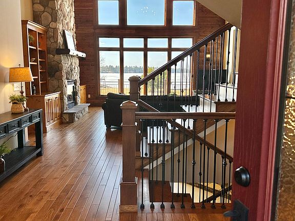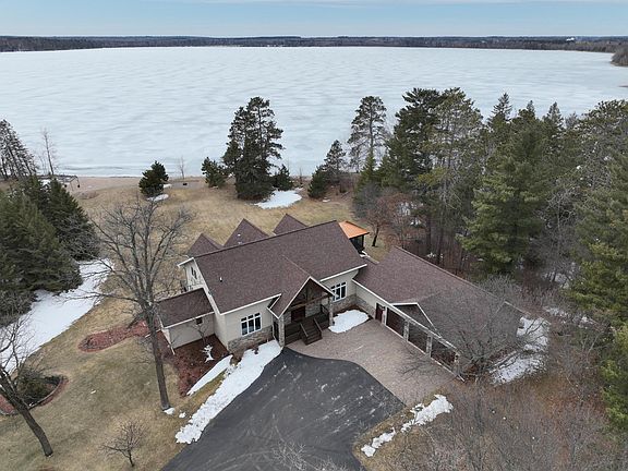 Take Lake Life Living to the Next Level of Luxury! Situated just 9 miles from Bemidji, this immaculate, move-in-ready lake estate offers nearly 300 feet of level, hard sand frontage and 5.37 acres of privacy. Breathtaking sunset views and an ideal blend of privacy and proximity make this the perfect lakeside retreat. Recently remodeled and refreshed, this home boasts exceptional craftsmanship and thoughtful design throughout. The main level features cathedral ceilings, an open-concept living area centered around a stunning cultured stone gas fireplace, custom built-ins, and a lakeside wall of windows that brings the outdoors in. Beautiful hickory hardwood floors run throughout the main level, complementing the gourmet kitchen, which is a true chef’s dream. Complete with quartz countertops, custom cabinetry, a large center island, and high-end appliances, including an induction cooktop, this kitchen is designed for both style and functionality. The main floor primary suite is a true sanctuary, offering a custom walk-in closet and a luxurious spa-like bath with travertine tile, a jetted tub, and a walk-in shower. Additional main floor features include a lakeside sun porch, a dreamy laundry room, a convenient ½ bathroom, and a private office space. Upstairs, you’ll find two spacious bedrooms, an open loft area, and a beautifully remodeled ¾ bath featuring a walk-in shower. The walk-out lower level includes a large family room with a cultured stone gas fireplace, the fourth bedroom, and a full bathroom. Throughout the home, you'll notice solid hickory doors and trim, elevating the overall luxury feel. The home’s exterior is just as impressive, with a paved driveway, meticulous landscaping, and low-maintenance steel siding and composite decking. Car enthusiasts and hobbyists will appreciate the attached heated three-stall garage with epoxy floors and corrugated steel panel walls, so clean you could “eat off the floors,” plus an additional 2.5-stall detached garage to house all your toys. The lakefront area features a LARGE hard sand beach, a storage shed for equipment, a convenient water spigot and electricity for ease of use, and a lakeside firepit area providing the perfect spot to enjoy summer nights by the water. Additional features include a large lakeside deck that includes a screened porch, tons of storage, and extra walk-in closets throughout the home. This estate blends luxury, comfort, and the best of lakefront living—enjoy the virtual tour!