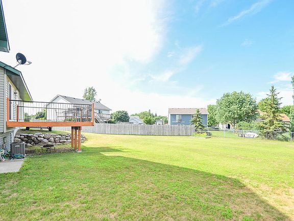 Perfect starter home with plenty of room! Well maintained 4-level split. Home features 3 bedrooms on upper level, master walk-thru bath, dining room with slider to 14x12 deck - great for morning coffee! Newer flooring and carpet throughout. Lower level has walkout to partially fenced back yard, large family room perfect for entertaining, 3/4 bath with in-floor heat, 4th bedroom. Front load washer/dryer, newer 50 gal water heater. Big Lake has many parks, boat access, farmer's market, movies in the park. Close to Northstar Commuter Train.