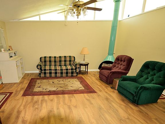 PRICE IMPROVEMENT, $162,900!! Modern style home with many updates. 3/2 bath with new laminate flooring throughout. Ceramic tile in both baths. Retro style gas burning fireplace and vaulted ceiling in the living/dining room. Ceiling fans throughout. New appliances and countertops in kitchen. Kitchen also has a pantry and extra storage closet. Both bathrooms are updated with new countertops, ceramic tile, toilets and lighting. The interior has fresh paint in nice neutral colors. Note the size of the master and corner bedroom. Most exterior windows have been replaced. Enjoy a covered porch on the side of the home right off the living and dining room. Home has a metal roof and vinyl siding for easy maintenance. Seller has installed new mechanical sewer system.