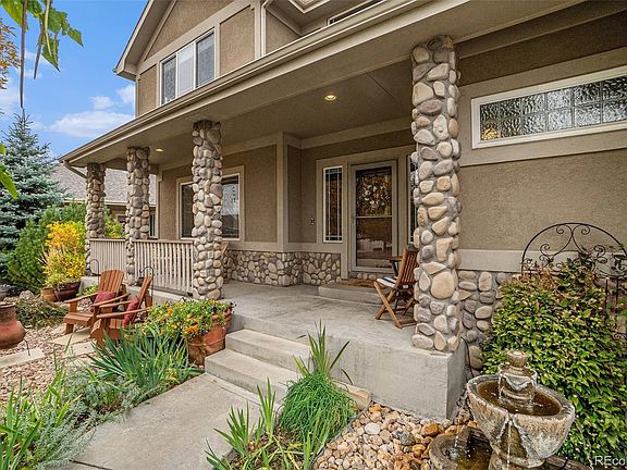 Absolutely stunning semi-custom two story model quality home that is perfectly perched on one of the most beautiful and desirable lots in the prestigious Stoneridge community of Firestone, Colorado. This remarkable home checks all of the boxes...Spacious open floor plan, immaculately maintained, quiet cul-de-sac, full finished walk-out basement, huge 5 car attached garage, and backs to open space area with mountain views! As you arrive at this remarkable home you will love elegant stone and stucco enhanced exterior with an inviting covered front porch. Once inside, you will be immersed in true elegance and peaceful tranquility with soaring ceilings, extended hardwood floors, and an abundance of natural light that floods this home through the large windows that perfectly frame the outdoor splendor. The gourmet kitchen is sure to please with a perfect combination of Granite counters, upgraded stainless steel appliances, gorgeous Alder wood cabinetry, decorative lighting, and a convenient center island. The open concept floor plan boasts an over-sized family room with plenty of room for the whole family and a cozy gas fireplace, and a guest bathroom. Wind your way up the custom wrought iron staircase where you will find the luxurious master suite. Indulge yourself in pure relaxation in the spa-like en suite and a huge walk-in closet. There are 2 additional large bedrooms, flex room with a double French-style door entry, open loft, full bathroom, and a convenient laundry room. The professionally finished walkout basement is an entertainer's dream with a huge recreation room with electric fireplace, flex room, bathroom, and a custom wine room. You will love the outdoor living space with an extended upper level deck with views of the meticulously maintained landscape and open space. Enjoy multiple entertainment areas including a cozy gas firepit and extended patio. Other features include an over-sized 5 car garage w/50 amp service and cabinets, storage shed, and more!