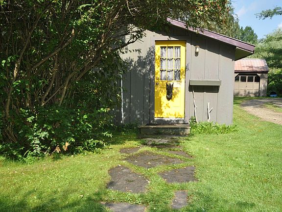 Dorset on the Mettowee River offering all the amenities that Dorset and the area provides... nearby Dorset Village. Beautiful Mountain Views over bucolic open meadow with the river music along the border. Kitchen offers granite counters open to a two window wall of light dining area with sliders that go out to a spacious deck. The Living Room also open to the Kitchen/Dining offers a stone fireplace with wood stove insert. The level .9 acre parcel is open and supports gardens and a playful yard. The views are truly captivating! This property is in the flood plane. House was not damaged in Hurricane Irene nor the recent high waters. There are several outbuildings that include a lovely 215 SF year round use office with high speed internet, phone and electricity, a barn/garage, wood shed and fencing for privacy. There is a building inspection and septic inspection available only with serious interest in making an offer and Seller's approval. New Rennai propane wall heater. House is very efficient to heat. This 890 SF plus 215 SF studio/office heats with woodstove, year round primary residence has character and is easy to maintain... Shown by appt only.