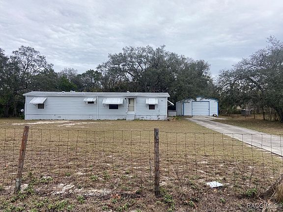 MORE PICTURES COMING SOON!! This charming two-bedroom, 1.5-bathroom single-wide mobile home is nestled on a spacious half-acre lot in the desirable, no-flood zone area of Homosassa, Florida. What truly sets this property apart is the impressive 20x26 metal detached garage—perfect for storage, a workshop, or parking your vehicles. Whether you're a hobbyist, car enthusiast, or just need extra space, this garage provides plenty of room for all your needs. Enjoy the peace of mind knowing you're in a flood-free zone while having easy access to local amenities and natural beauty. Ideal for those looking for a functional, low-maintenance home with ample storage and space!