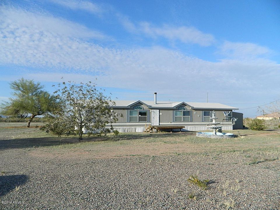 This 2100sqft home sits on a fully fenced 3.3 acre lot! Beautiful mountain views! Mature desert landscaping! Only one lot from paved roads. Oversized rear deck! Dual sided fireplace! Deluxe master bath with garden tub! PRIVATE WELL!