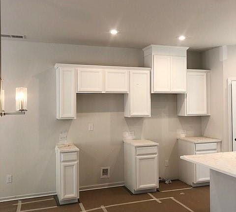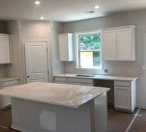 - Kitchen Features: Breakfast Bar, Eat-in Kitchen, View to Family Room, Stone Counters, Kitchen Island, Pantry Walk-In, Solid Surface Counters