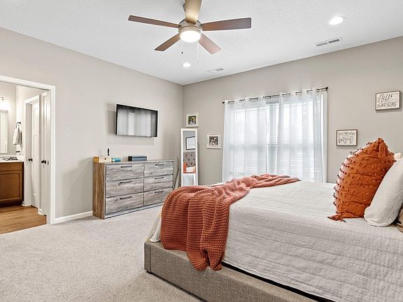 - Cathedral Ceiling(s), Ceiling Fan(s), Walk-In Closet(s), Laminate Counters, Eat-in Kitchen, Entrance Foyer, Kitchen Island, Open Floorplan, Pantry, Double Vanity, Stand Up Shower, Tub/Shower Combination, Main Level Bedroom Suite, Great Room, Custom Cabinetry
