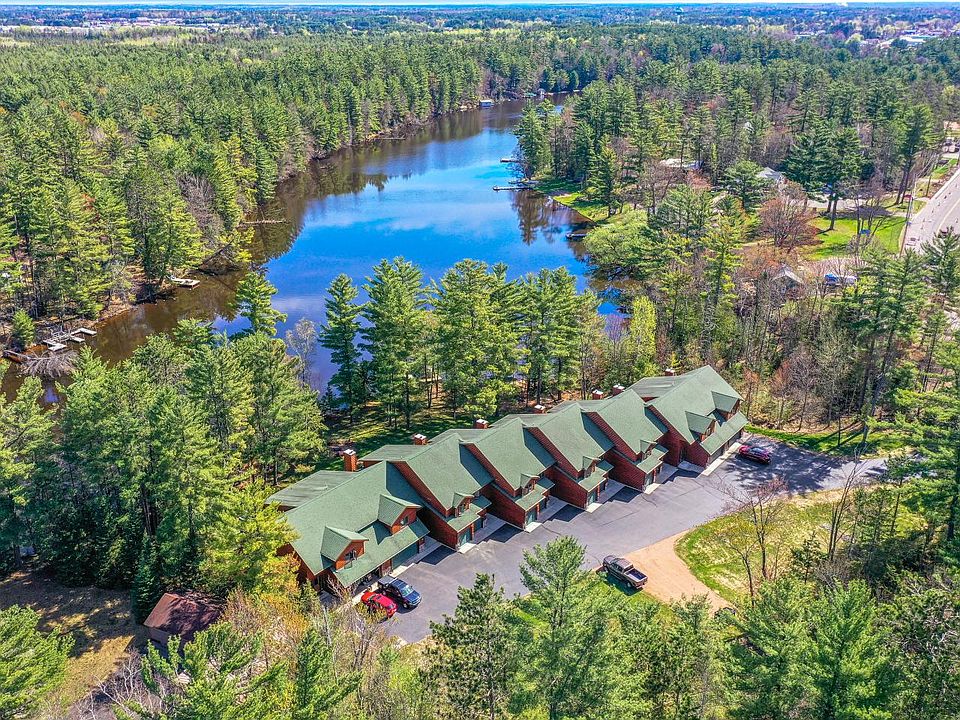 Condo life on Eagle River, part of the Eagle River Chain doesnt get better than this! This 2BR/4BA home has vaulted ceilings, a field stone gas fireplace, a beautiful kitchen & 2 primary bedrooms on the second floor. The fully finished lower level with half bath is a blank slate; create an office space, workout area or additional living space. The covered deck with river views is the perfect place to start & end your day. The proximity to town, the 2-car attached garage & a designated permanent pier add to the appeal, checking off all the boxes for perfect Condo living in the heart of the Northwoods!