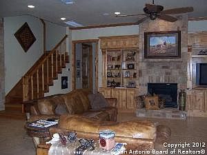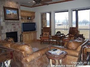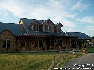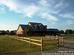 Blanco equestrian estate includes and exqusite five bedroom ranch home with handicapped-equipped nanny's suite, two living areas, formal dining, office and an adjacent trophy/game room overlooking the manicured property with pecan orchard and coastal fields. The fenced and cross-fenced ranch offers a seven stall barn with tack room and apartment, large RV/equipment barn, 150' x 250' pipe roping arena, 60' covered round pen, AND 3 acres of the Blanco River!!!