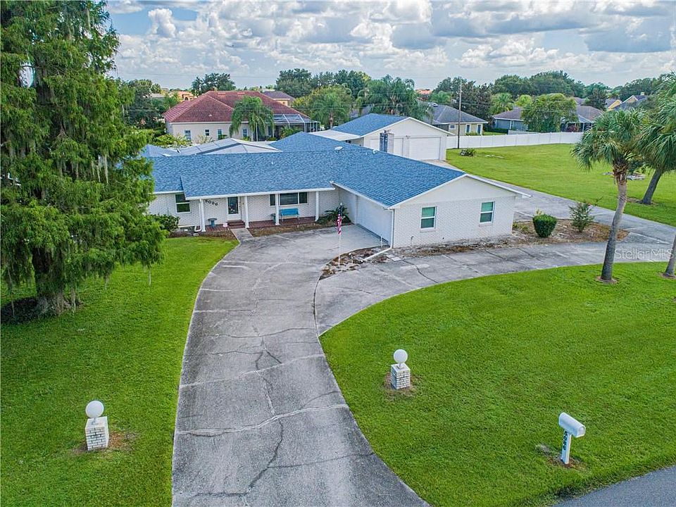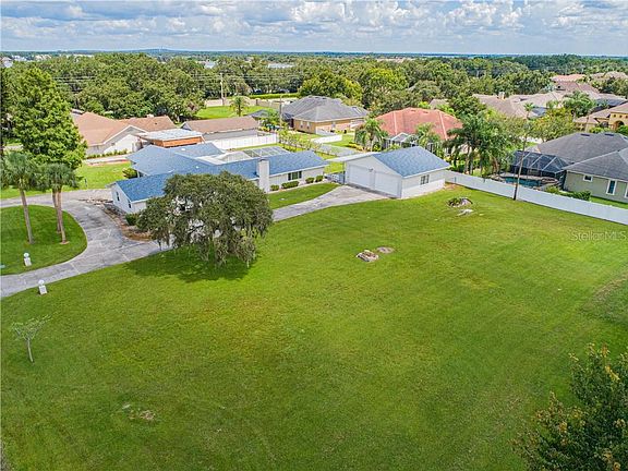 Nestled between Lake Ruby and Lake Winterset and just a short drive from Legoland with easy access to the Winter Haven Chain-of-Lakes, this stunning POOL HOME estate spanning over an acre of land provides an exclusive opportunity to those discerning buyers looking for a property that has it all! Recent updates include: roof replaced in 2016, AC coils replaced in hall and main bedroom units 2019/2020, A.O. Smith water heater installed 2018, Whirlpool Water Heater installed 2014, upgraded Pool & Patio Performance Pump installed 2018, upgraded Zodiac MX8 pool cleaner, Whirlpool water softener installed in 2019, Chamberlain Garage Opener installed 2019, whole house master GCFI installed at electrical box, home has been wired for generator. A sweeping circular driveway greats you as approach the home with enough parking space for any upscale dinner party. An additional driveway leads you back to a huge detached 4 car garage/workshop with over 1,100sf plumbed with air compressor lines, its own bathroom and extra tall doors. You will never have worry where to store your boat, toys, and tools again! Attached to the workshop is a covered patio, perfect for cookouts or lounging after working on projects. Entering the home, you will love the unique floor plan which provides French Door access to the screen enclosed pool deck from all 3 wings, making for an entertainer's dream. Inside, brick accent walls, recessed lighting, exposed wood beams, and crown molding are found around every corner and each bedroom features it's own walk-in closet. The living room and informal dining area both have updated tile flooring with tons of natural light as well as a wet bar. The formal dining room features wood paneling and tile floors as well. The family room boasts a beautiful brick fireplace as a focal point and provides an alternate area for guests to gather. The kitchen has island seating, solid wood cabinets, stainless refrigerator and range, plus plenty of pantry space. There is an inside laundry that makes the weekend chore lists easily managed. The home office area could easily function as a den, teenager retreat, or game room! The huge main suite has space for a sitting area and an accommodating ensuite bathroom. The remaining 2 guest bedrooms are spacious as well. You do not want to miss out on this gorgeous home and it's overwhelming potential. Contact us today to schedule a private tour!