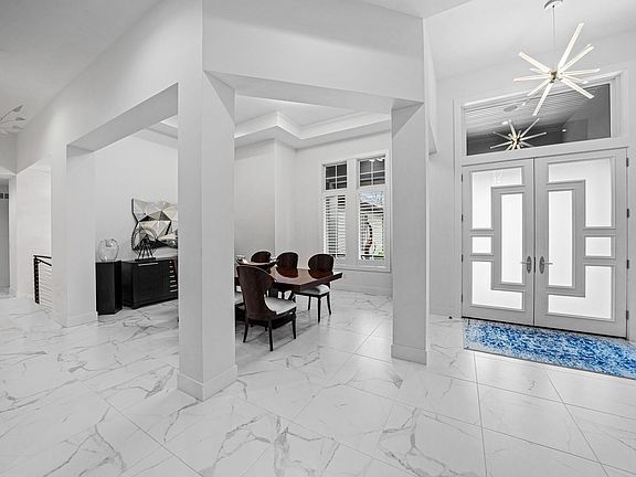 Indulge in luxury at this executive masterpiece, meticulously designed as their dream residence! Step into elegance with 12 ft. ceilings, a linear fireplace and white marbled porcelain flooring, the main floor exudes elegance. This open layout leads to a screened area with a Napoleon grill and sliders to the lush backyard. The kitchen boasts custom cabinetry a 12 ft. long island and stainless Steele shelving in the gorgeous family room. A wine room, butler's area and a large pantry enhance functionality. The main floor primary suite features a fire place, his and her closets, a lavish 9' by 8' shower with 5 heads. The lower level is an entertainer's dream with a family room, bar, cigar room, 3 guest bedrooms with 2 full baths, another room used as a work out room. Built by Legacy Homes, this home is a symbol of opulence and architectural excellence. Welcome to absolute luxury and breathtaking design. Just minutes to Knollwood Country Club, Notre Dame University, restaurants, shopping & hospitals.