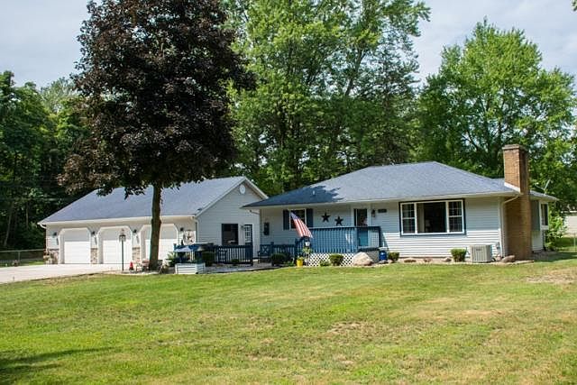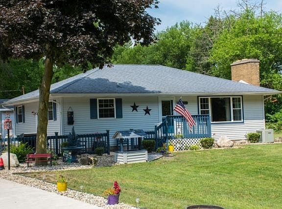 Must see ranch on a corner lot, surrounded by beautiful trees! Meticulously maintained with loads of upgrades - including a detached 3 stall, heated garage with half bath and upper level storage! The home is easy to maintain with hardwoods throughout. Beautiful open kitchen with granite sink and brand new dishwasher. The living room includes new large, efficient windows and stone covered fireplace with built-ins. There are three bedrooms and a full bath on the main floor. The basement includes an epoxy floor with built in bar area, living space, laundry and mechanical rooms. Enjoy the private outdoors on cement patio area or wood deck out front. Come see this property today!