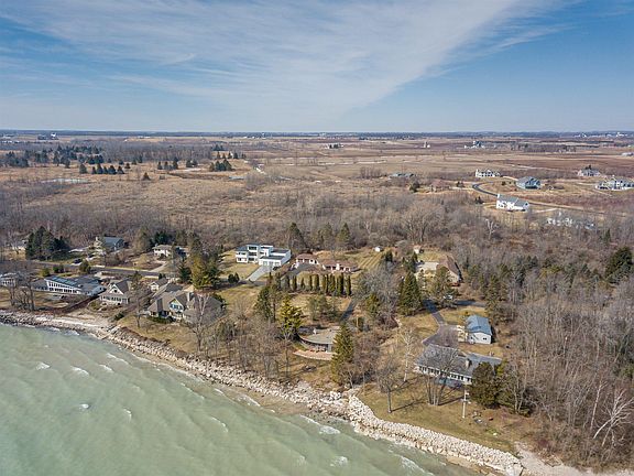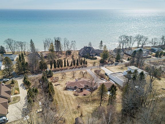 Incredible opportunity and one of the best streets along Lake Michigan. Custom built ranch sits across from the Lake. Almost one acre lot with $40,000 in landscaping, New roof, brick paver walkways, large patio, composite deck and water feature that will impress any buyer. Inside you have open concept ranch with vaulted ceilings. Pella windows and six in total patio doors for all the daylight and amazing views. Large master bedroom with heated floors in the bathroom. Another generous size bedroom, Den and main floor laundry. Open concept kitchen with breakfast bar. The dining room is a must see with wood beams and incredible view of the back yard. Gas fireplace, wood floors, some heated floors, gutter guards and large shed with power. Amazing location and desired ranch style home.