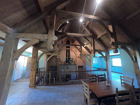 Unique opportunity to finish a custom built beautiful timber frame home. Sitting on 10 acres with Five Mile Creek running through your back yard, this 3 bedroom, 2.5 bath just needs your personal final touch. Home includes a billiard room that's connected to a home theatre. The lower level offers a workout room which could easily be converted to a bedroom with an option to finish a third full bath. An attached two car heated garage has room for your toys plus there's extra room in the 2-car detached garage.