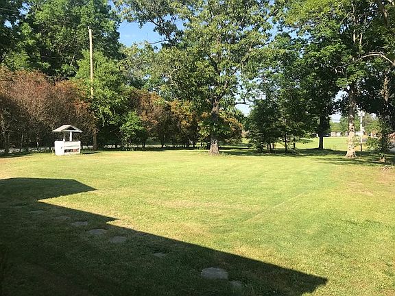 Home sits on a corner lot far off the road on 1.6 acres with a large front yard and storage shed.