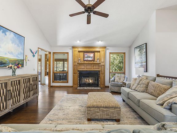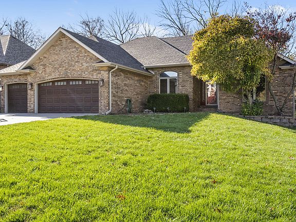 All-brick, walkout basement home in National Place! New roof in 2024!!! This impeccably maintained home offers 5 beds, 3 full baths, and a fantastic and functional split-bedroom layout. Sellers have added quality updates like front plantation shutters, new garage doors, and replaced all of the hardwood floors that run through most of the main level. You'll love the living room's gas fireplace and vaulted ceiling with accent lighting. Kitchen offers updated floor tile, beautiful granite countertops, stainless appliances, and instant hot water at the sink. The primary suite is very spacious with walk-in closet and separate tub and shower. Off the kitchen you'll find the sunroom (NOT included in the total square footage) with sliding glass windows, vinyl flooring, and stairs to the back yard. (There's also a capped gas line to make it easy to add heat!) The basement offers an expansive 2nd living area, complete with wood burning fireplace and wet bar! There are 2 more bedrooms with sizeable closets (opposite sides of home), the 3rd full bath, and over 400 sf of John Deere storage room. Out back, enjoy the fully fenced back yard that backs to a large wooded lot for a great feeling of privacy. Other extras include a water softener and epoxy floors in the 3-car garage. National Place is a charming neighborhood in the Kickapoo school district in south Springfield, located just minutes to highway access, Cox hospital, and many south-side amenities. The neighborhood offers pool, tennis, and basketball. This home is well maintained and move-in ready! Come see it today!