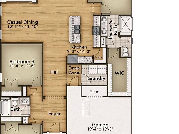 The Shorebreak is the perfect balance between outdoor living space and a coastal-inspired interior, encouraging you to slip off your sandals and relax. Starting at 1,938 heated square feet, this home offers three bedrooms, two bathrooms, and a two-car garage. Step in from the Shorebreak’s covered front porch to find an open kitchen, dining, and great room area. Breeze through sliding glass doors onto a 179 square foot covered porch, ideal for warm summer evenings or afternoon get-togethers. Whether you’re looking for an abundance of counter space, added seating, or a more intimate gathering area, this model’s options will serve as the solution. Through the foyer, you’ll find a large drop zone and laundry area while you unload beach accessories or sand-filled clothes. Drop-off beach chairs in the convenient storage space just inside the garage, as well. Beyond the open living space, find a stunning master suite complete with a tray ceiling, enormous walk-in closet, double vanity, and a seated shower.