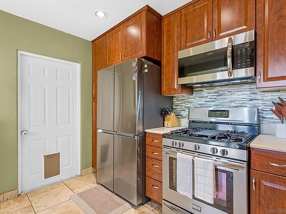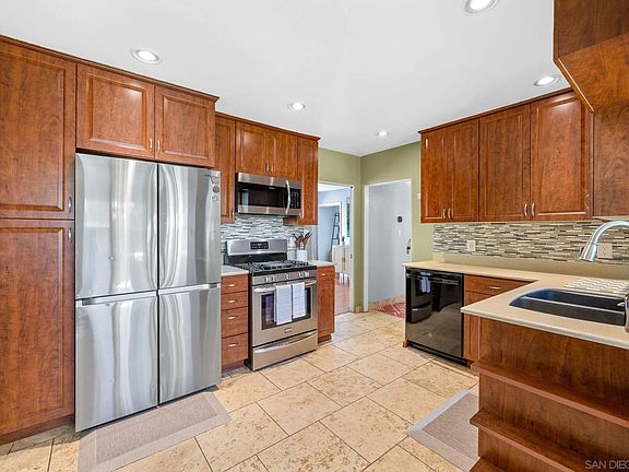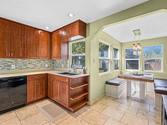 Nestled in the heart of La Mesa, this home offers the perfect blend of charm, modern updates, and a prime location within walking distance to a variety of restaurants and businesses. This light-filled, airy home features 3 bedrooms and a bonus 4th room above the garage. The large, private backyard is a true entertainer's dream, boasting a spacious turf grass area, a deck for lounging, and a cozy patio complete with an outdoor fireplace. Inside, the updated kitchen shines with custom cherry cabinets, sleek stainless steel appliances, silestone countertops, and a stylish tile backsplash. The home is beautifully accented with cherry wood and travertine tile flooring, adding warmth and elegance throughout. Additional features include a cozy dining room with custom built-in cushioned bench seating, central AC and heating, and a fully paid-for solar system, offering both comfort and energy efficiency. Come see everything this La Mesa gem has to offer.