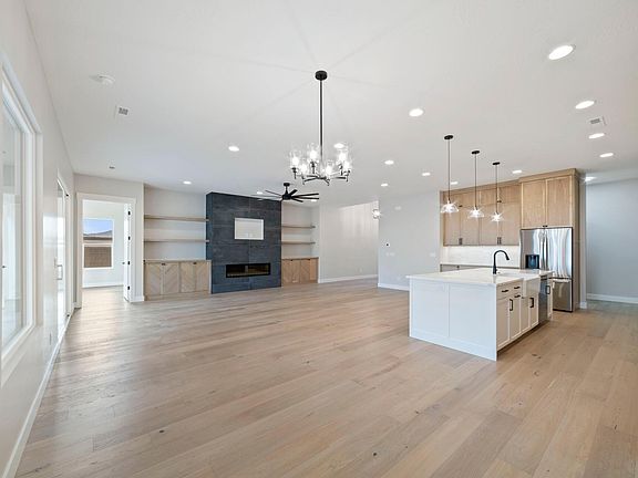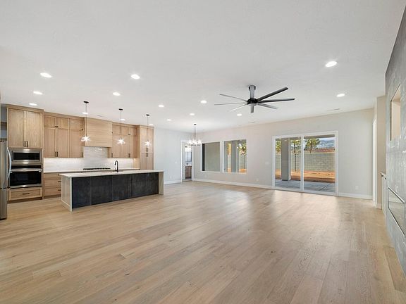 Welcome to your dream home in the coveted Oak Haven subdivision of Hurricane, Utah! Only minutes away from Sand Hollow State Park and it's sand dunes, there is no shortage of available outdoor activities! The exterior of the home boasts real stone, giving striking curb appeal that sets this home apart. At the entrance is a grand 4-foot wide iron front door, adding a touch of grandeur to your arrival. Stepping inside, you'll immediately notice the meticulous attention to detail, starting with custom tile work, engineered wood flooring, 10-foot ceilings, and upgraded insulation throughout the home, ensuring energy efficiency and year-round comfort The 8-foot solid core doors add a touch of elegance and sophistication to every room, while the custom kitchen cabinets and butlers pantry offer ample storage space and stylish functionality.