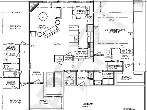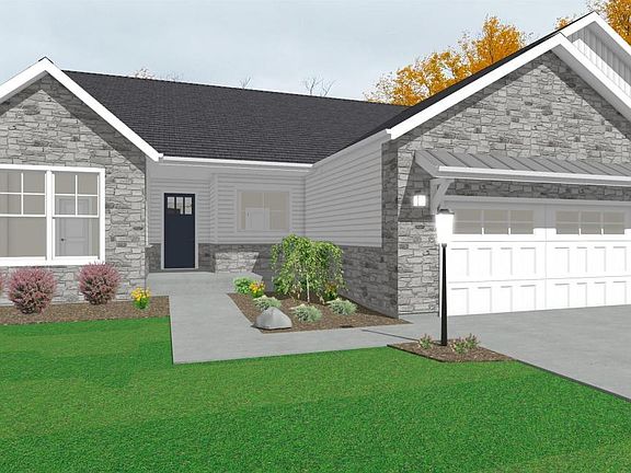 PW 45 -Brand new construction in the coveted Portage Woods community! This home sits on a truly spectacular lot, one of the very few left, spanning a generous 1.2 acres, providing peaceful views. This fantastic ranch-style home offers 2097 square feet of living space on the main level, with the potential for an additional 2100 square feet in the walkout basement perfect for customizing to your specific desires. Spacious, open floor plan boasts 9-foot tall walls throughout the first floor, with 10' tray ceilings in the great room, kitchen, dining area, and master bedroom. The well-appointed kitchen is an entertainer's delight, featuring hardwood cabinets, a huge kitchen island, pantry, and a 4-piece stainless steel kitchen appliance package. The solid surface countertops throughout the home exude quality and style. The great room becomes a cozy gathering place with a modern linear electric fireplace and the split ranch design places the master suite on a separate side of the house, ensuring privacy and tranquility. Each of the 3 bedrooms boasts ample space and natural light, providing a relaxing retreat for everyone in the household. Both full baths feature double sinks and private toilet rooms, offering convenience and privacy. The master ensuite is a true haven, featuring a large walk-in tiled shower. The mudroom entrance, complete with a bench and coat closet, ensures a tidy transition from the three-stall garage to the main living area. Luxury plank flooring graces the common areas, while plush carpeting adds comfort to the bedrooms. Enjoy the private outdoor space and quiet wooded lot on the covered porch. Portage Woods is conveniently located near Michigan state line, airport, Notre Dame, and downtown South Bend. Set up a showing today and call this Home Sweet Home!