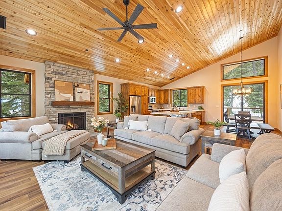Experience the ultimate mountain retreat in this brand-new custom home in Soda Springs, offering easy access to top ski resorts. The open floor plan creates a spacious atmosphere, with high pine ceilings, large windows, and knotty alder finishes. The chef’s kitchen boasts knotty alder cabinetry and quartzite countertops. With four bedrooms, including a primary suite with a custom walk-in closet, oversized shower, soaking tub, and double vanity, this home is designed for comfort. A second ensuite bedroom offers extra privacy. The property is wired for a generator and EV charger, and the HOA covers water, sewer, and road maintenance. Don’t miss this ideal base for your outdoor adventures.