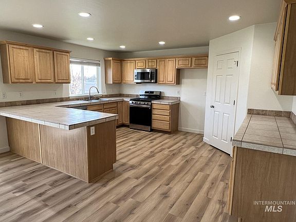 Large, updated home adjacent to the middle school lawn. Paved public access to the school lawn is only 2 houses down the street. Pressurized irrigation. Recent updates include: new concrete driveway apron, new dishwasher, microwave, gas oven range, Luxury Vinyl Plank (LVP) flooring, carpet, paint. Very clean property. Automated sprinkler system is getting updated this month. Spacious rooms. Gas fireplace. Landing area upstairs. Master bathroom has a separate shower and tub. Front, covered patio. Kitchen pantry and storage under the stairs. Front and back gutters. Agent owned. Seller can purchase the buyer's current home, if needed and if local.