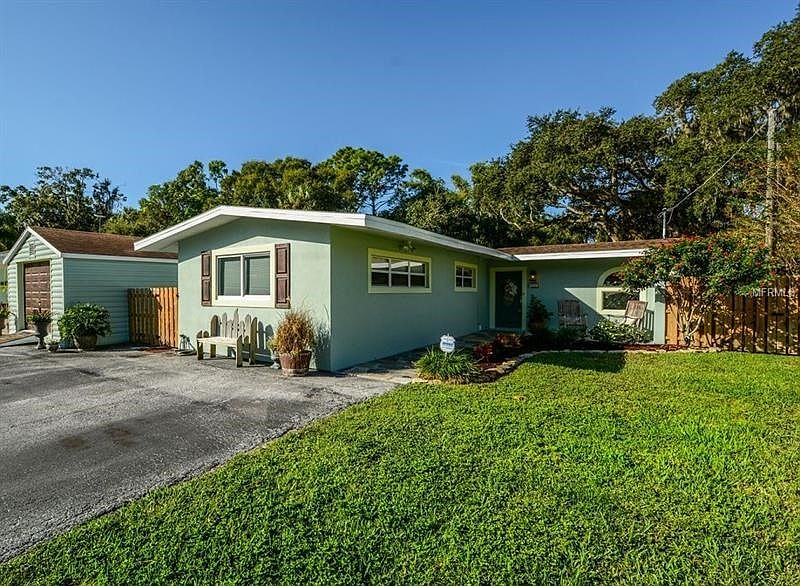 This is a very well appointed home and impressive property less than a half mile from the river in historic Palmetto. Walking into this bright, open plan with hardwood floors, pillars, and a chefs kitchen, it feels like an executive model home. The kitchen features granite counters, solid wood cabinets, top of the line stainless steel appliances, a gas stove, pot filler, a long breakfast bar, and pantry. The master bedroom offers a walk-in closet as well as two smaller closets, tongue and groove pine ceiling, and en-suite bathroom. The small guest bedroom just off the master would make the perfect nursery or office. In the back you will find the final guest bedroom and bathroom, as well as the laundry room and exterior door which leads to a nice fenced "courtyard" area with a large storage shed. The covered, screened lanai and huge outdoor patio space are perfect for entertaining with plenty of room for seating and tables...this space is also pre-lit with gorgeous lighting for evening events. The patio is also the perfect place to cozy up around the outdoor gas fireplace. The grand oak shades a deck for the perfect place to relax with a book while the kids play on the adorable tree house and tire swing. This huge backyard is fully fenced, has a sprinkler system, and is ready for pets. This is the perfect place to call home, and is a must see to fully appreciate.