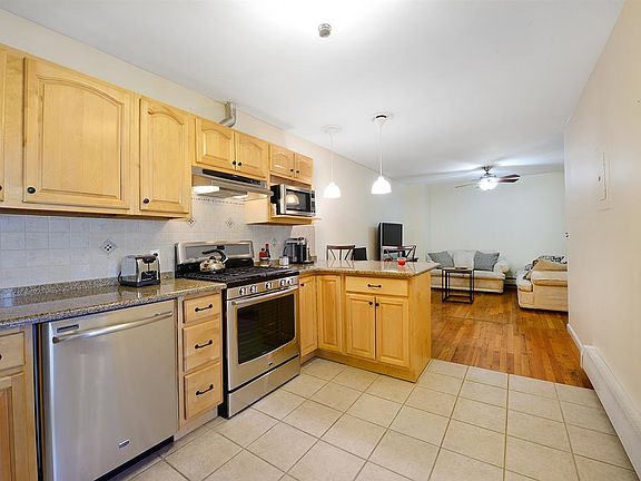 New-to-market 2 bedroom home with attached private garage space. Truly one-of-a-kind and unique space, this home is a great starter home for any first-time buyer or investor. The kitchen is upgraded with stainless steel appliances and granite countertops. Bathroom is newly updated with a marble sink and radiant heat within the floors. With hardwood floors throughout, this home offers 3 large bay windows that provide a ton of natural light into the apartment. Located on the corner of 2nd and Madison, you are just steps from the 2nd Street Light Rail, and a quick walk to the Hoboken PATH Terminal. Free washer & dryer is located on the ground floor. Storage closet available underneath the stairs.