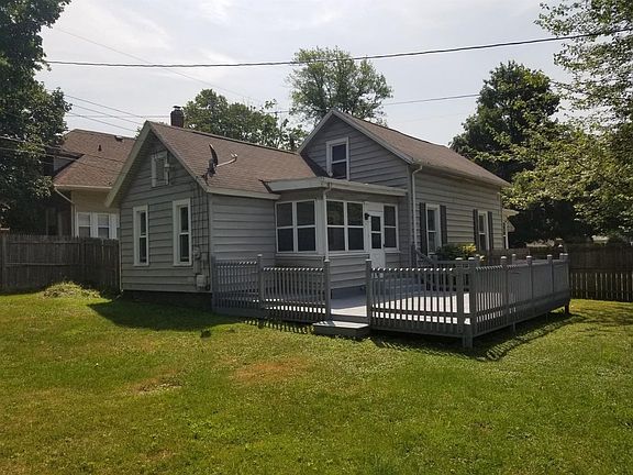 Adorable 2-bedroom home centrally located near schools and shopping. Large living and dining rooms with replacement windows and laminate floors. Country kitchen with plenty of cabinetry and island area. Kitchen leads out to enclosed porch and deck area. Large fenced in lot with single car garage and useful basement.