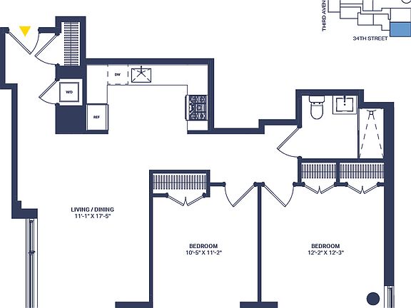Welcome to Residence E, a corner unit two-bedroom one-bathroom facing east, south, and west that embodies modern luxury and sophistication. This meticulously designed home offers an unparalleled living experience in the heart of Midtown. Hardwood floors stretch throughout the apartment, creating a warm and inviting ambiance and the oversized wall-to-wall windows allow an abundance of natural light to flood the space. The open floor plan seamlessly connects the living and dining areas, offering a layout that is perfect for entertaining or simply relaxing after a long day. With its Kohler fixtures, Italian two-tone cabinets, and LED lighting above the Silestone countertops, the sleek and stylish kitchen invites culinary exploration. As a resident of The Murray, you have access to an array of amenities that enhance your living experience, from the state-of-the-art fitness center and golf simulator to the resident lounge and rooftop terrace with BBQs. Make this exceptional apartment your new home at The Murray, where contemporary design, luxurious finishes, and an unbeatable location come together to create the epitome of urban living. Please contact the leasing office for additional information regarding Broker OP offering. Pictures reflect apartment finishes and may not represent the actual apartment. All property information presented is subject to errors, omissions, price and offering changes, changed property conditions and withdrawal of the property from the market, without notice.