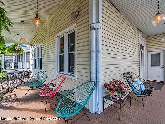 Historic beach residence has been transformed into a contemporary masterpiece. Spectacular renovation has produced a palatial family home along with 2 modern income producing units. The stunning primary unit spans the 1st two-floors w/over 2700 s.f. of custom-designed bright & airy living space. Enter thru the stately entry foyer w/classic staircase, palatial living room with12-foot ceilings, architectural millwork & designer lighting. Dramatic dining room & elegant chefs kitchen boasts a double set of pro-grade appliances plus a half bath & office. The 2nd floor features 4 beautiful bedrooms & 4 baths, laundry & bonus room. A spacious 3rd floor loft apt has 3 beds/2baths & a 2 bed carriage house -both w/dedicated laundry. Wrap around porch, outdoor shower + hot tub on a large 50x150 lot.