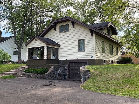 Delightful 4 BR brick home on corner. Big yard. Tall trees. Fireplace. Hardwood floors have been refinished to a warm shine. Two 1st floor BRs and 2 more and a office or playspace or sewing room up. 1st floor bath and a half bath in basement. Seller just repaved the driveway for easy care year around. there is a one car tuck under garage accessible through the basement and a big two car garage as well. It's neat and clean and affordable plus you are in the Popular Hurley School District. Wisconsin homes are getting hard to find. Don't miss out. Contact us today to see it.