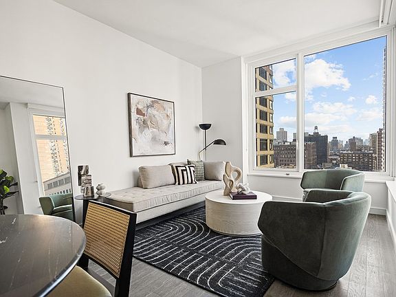 Reduced security deposit for qualified tenants, please send an email to schedule your tour. Welcome to Residence C, a corner unit two-bedroom two-bathroom facing north, east, south, and west that embodies modern luxury and sophistication. This meticulously designed home offers an unparalleled living experience in the heart of Midtown. Hardwood floors stretch throughout the apartment, creating a warm and inviting ambiance and the oversized wall-to-wall windows allow an abundance of natural light to flood the space. The open floor plan seamlessly connects the living and dining areas, offering a layout that is perfect for entertaining or simply relaxing after a long day. With its Kohler fixtures, Italian two-tone cabinets, and LED lighting above the Silestone countertops, the sleek and stylish kitchen invites culinary exploration. As a resident of The Murray, you have access to an array of amenities that enhance your living experience, from the state-of-the-art fitness center and golf simulator to the resident lounge and rooftop terrace with BBQs. Make this exceptional apartment your new home at The Murray, where contemporary design, luxurious finishes, and an unbeatable location come together to create the epitome of urban living. Please contact the leasing office for additional information regarding Broker OP offering. Pictures reflect apartment finishes and may not represent the actual apartment. All property information presented is subject to errors, omissions, price and offering changes, changed property conditions and withdrawal of the property from the market, without notice.