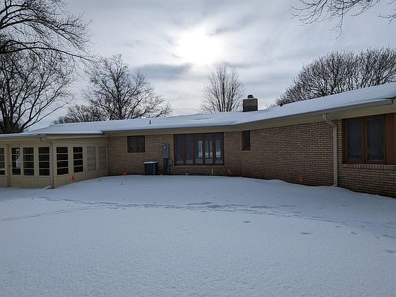 MIDCENTURY MODERN This delightful all brick ranch features a unique design that offers a formal living room with formal dining area, kitchen with breakfast nook, two bedrooms plus a den (could be used as a 3rd bedroom), two fireplaces, bath & ½, with shower located in lower level, family room area in lower level and attached three season room, all situated on a large lot with a stunning private woodland view and double attached garage. Recent improvements include new shingles and gutters 2018 & 2019, new energy efficient furnace and A/C 2022, new 200 AMP electric panel 2022, new sewer line from home to curb 2022. Two new Comfort Height Stools in 2022. New Entry Locks.