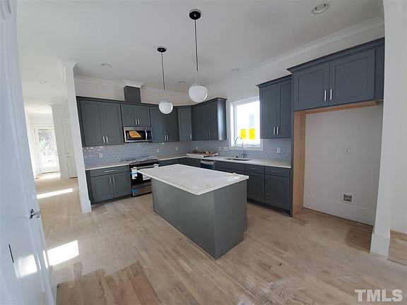 Incredible West Raleigh established Neighborhood with several high end new builds. Custom Modern cottage loaded with features: Site finished hardwoods entire 1st floor,quartz countertops,Large Covered deck , Cove crown on 1st floor, Fiber cement siding,30year roof,level 2 Cabinets,Level 2 tile,Gas Range,Tankless water heater. We have a similar finished home we can show for fit and finish reference. Stairs to front porch will be wood. Please see agent Remarks