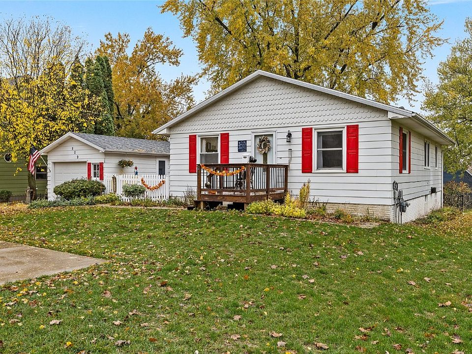 This charming ranch plan sits on an oversized lot in the heart of Mount Vernon. Within walking distance to schools, parks, and more, this property offers small town proximity and a secluded park like backyard. The completely remodeled kitchen offers quartz counters, newer appliances, and a spacious eat-in kitchen. There is easy to maintain laminate flooring throughout the main level with windows overlooking the back and side yards. The lower level is a walk out complete with built-in gas fireplace, hard surface flooring, and fresh paint. The backyard is fully fenced and includes detached garage, deck, and large patio for outdoor dining and entertainment.