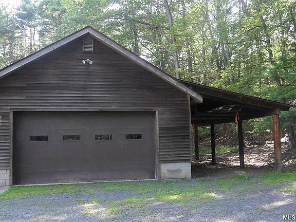 Privacy and seclusion? You got it! Nearly 2100 square foot home, privately situated on over four acres in Olivebridge. Nice mixture of finished lawn, woods, rock outcoppings and ledges. Cedar sided, contemporary offers open floor plan, vaulted ceilings, skylights, recessed lighting, walk~in closets, hardwood floors and a woodstove. Bright, cheerful kitchen complete with breakfast bar and pantry. Dining area features sliders that lead to the large wrap around deck and covered porch. Three bedrooms, two baths, family room and a summer kitchen too! Oversized detached with electric and woodstove makes the perfect workshop or place to store your vehicles and whatever else your heart desires. Carport for some added storage space.