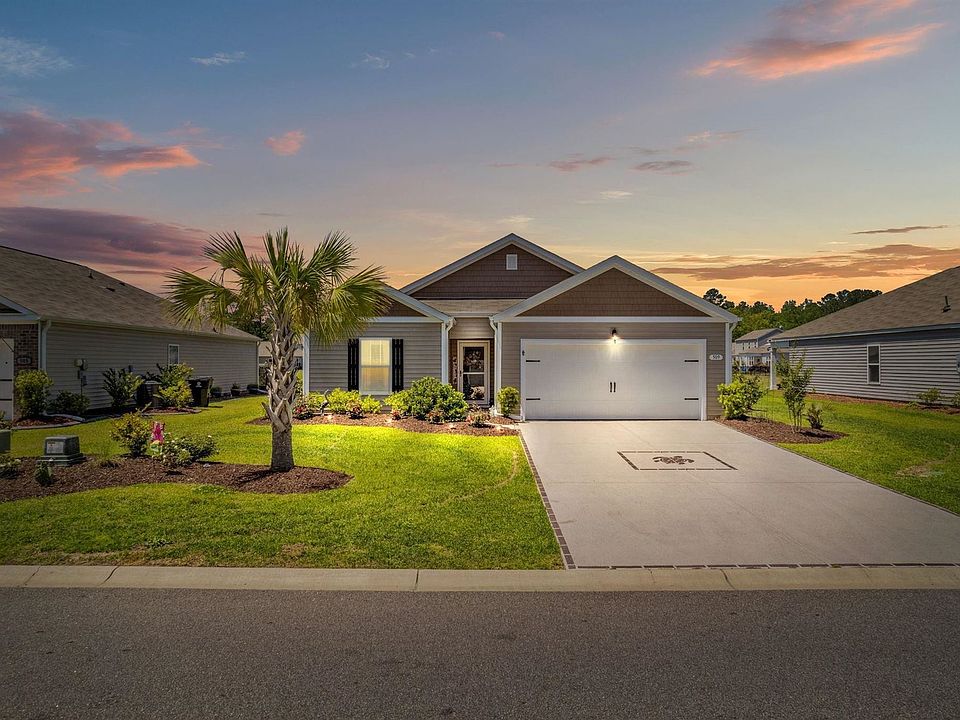 This exceptional home offers a beautifully maintained exterior and interior. Fall in love with this amazing open concept kitchen, that boasts stainless-steel appliances, granite countertops and a great size pantry. The roomy master bedroom is the perfect place to dream and includes a large walk-in closet. The other two bedrooms are located in the front of the home as the master bedroom is located in the back. The professionally landscaped yard includes a covered back patio, a brand new irrigation system, and a fenced in backyard with fruit trees that over looks the pond! You can keep your vehicles clean and dry with a useful 2-car attached garage. While other features included in this home are gutters, a sealed decorative driveway and a upgraded crown molding trim package. This is a well placed home in a sought-after part of Horry County and only a 10-15 minute drive to the beach with close proximity to grocery stores, restaurants and shopping. Literally everything you need access to is an easy drive from home. This home is also located in the highly rated school district of St. James. So don't miss out on owning this fabulous home in the community of Harmony at St. James. See this one quickly or miss a great home. Call to schedule your showing today!