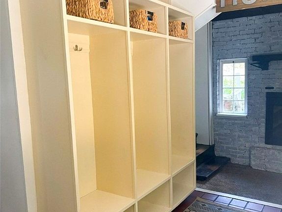 Wood burning fireplaceHalf bathFinished basementNew roofFresh paintCentral airBuilt-in cubbies