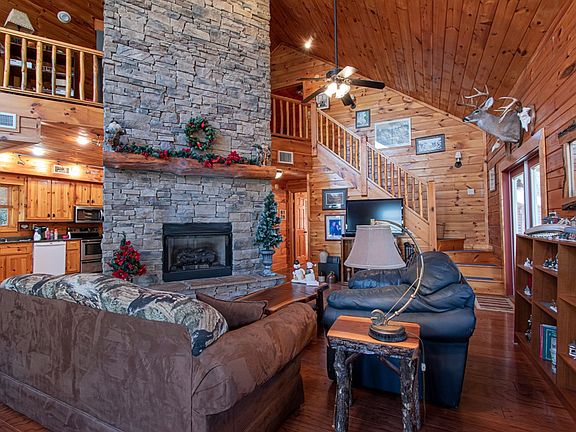 Made for gathering w/an easy going atmosphere is this casual yet polished 2 BR 2.5 BA partially furnished log home on 2.99 acres. Step into the Great Room & your eyes focus on the center floor to ceiling rock fireplace. The Great Room opens to your dining & kitchen w/laundry, pantry & owner suite completing the main level. Owner suite BA has tile walk-in shower & tub for a relaxing soak. The loft landing makes for a great library or office w/French doors to private BR & BA. The all wood interior shines & is fitting for the wooded setting to be enjoyed from 12' covered porch . A detached double log garage & log storage building match the home. Green thumbs will be delighted w/greenhouse & garden.
