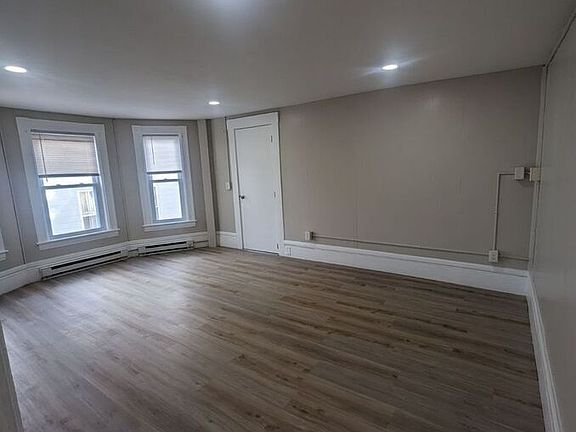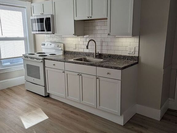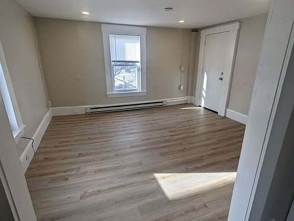 Fully renovated, 2nd floor oversized 1 bedroom unit. Features large walk-in closet in bedroom, Laundry room with washer and dryer and storage IN UNIT. Newly renovated bathroom with new fiberglass surround, brand new kitchen with cabinets, counters and fixtures, tile backsplash, over the range microwave. LED recessed lighting throughout unit. All new vinyl windows, tons of natural light. Hot water included! This also includes one off street parking spot. Your new home awaits. Tenants pays electric and electric heat. Credit check, 12 month lease, security deposit. No smoking, No pets. Off Street Parking Spot Washer/Dryer In Unit
