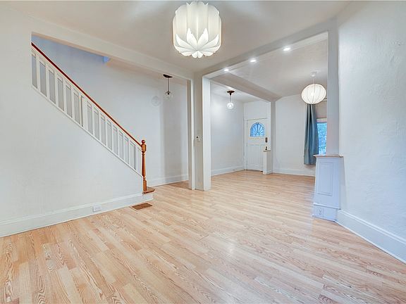 This charming half-duplex offers a welcoming level entry and a covered front porch, perfect for relaxing evenings. The main level boasts an airy open living and dining space, highlighted by exceptionally high ceilings and over-sized windows, creating an inviting atmosphere for gatherings. The kitchen provides easy access to the back porch and flat backyard, offering an ideal spot for outdoor enjoyment. Completing this level is one of the two full bathrooms. Upstairs, you'll find wall-to-wall carpeting and three generously sized bedrooms, each featuring high ceilings and large windows that enhance the sense of space and light. A second full bath serves this floor. Additional features include a detached garage, off-street parking space, new roof and windows, recent updates to the lighting, electrical system. Located just minutes from public transportation, restaurants, and shopping in downtown Carnegie, this home offers great potential and endless possibilities for customization!