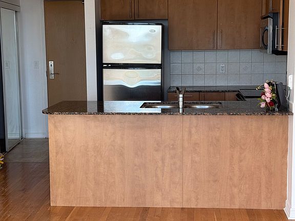 Spacious One-Bedroom Condo in a Prime Location. Experience elevated living in this beautiful high-floor suite, featuring a large picture window with breathtaking, unobstructed west-facing views. The kitchen showcases stainless steel appliances and granite countertops. Enjoy resort-style amenities including an indoor pool, sauna, fitness center, theatre room, guest suites, visitor parking, and much more. Unbeatable location! Just steps from the Transit hub ( Go station and TTC terminal station), subway, shopping, restaurants, and all the conveniences you could ever need.